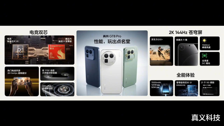官方说GT8其实是GT7 Pro的升级版,这个听听就好,因为其看齐最新Pro版的只有同款京东方2K直屏而已。至于全新引入的3.5倍潜望镜头,也仅仅只是采用了三星JN1传感器的入门级规格。